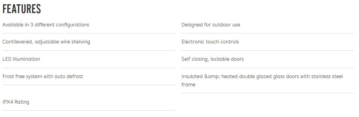 Insulated heated double glazed self closing doors. Adjustable temperature setting. Frost free system with auto defrost… Just to name a few benefits.
