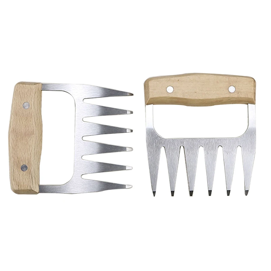 Meat Claws – Metal BBQ Meat Shredders are made out of stainless steel shredding claws and easy-grip timber handles making them easy to hold and use. These claws are ideal for shredding pulled pork or moving large cuts of meat around the BBQ without turning your hands.Â