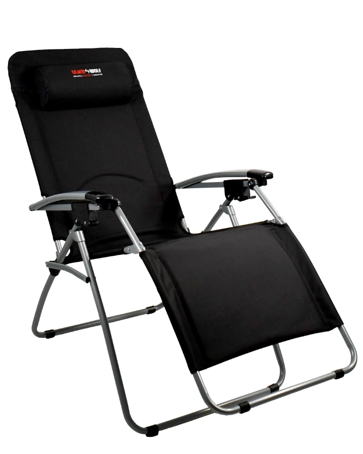 The new BlackWolf Reclining Lounger Chair is the ultimate way to relax in your backyard or the campground. It’s constructed from powder coated steel and 600D polyester, with a padded seat, headrest and footrest. For those who love comfort, this is your new go-to.Â